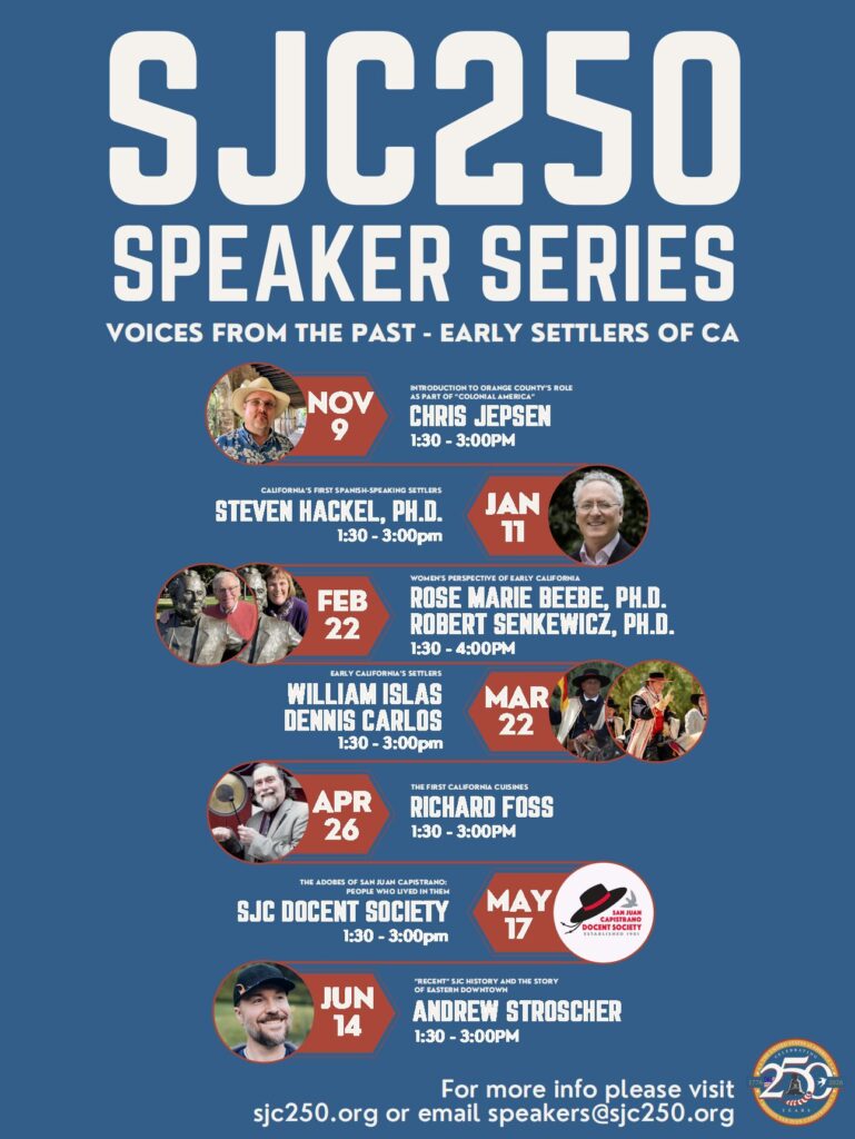 To honor this momentous occasion, the SJC 250 Committee—a collaboration between the Mission, City of San Juan Capistrano, San Juan Capistrano Historical Society, Fiesta Association, Boys & Girls Clubs of Capistrano Valley, Rotary Club of San Juan Capistrano, Juaneño Band of Mission Indians, Blas Aguilar Foundation, San Juan Capistrano Chamber of Commerce, and the Alliance for SJC Art—has joined forces to plan a yearlong celebration of events that are free and open to the public.